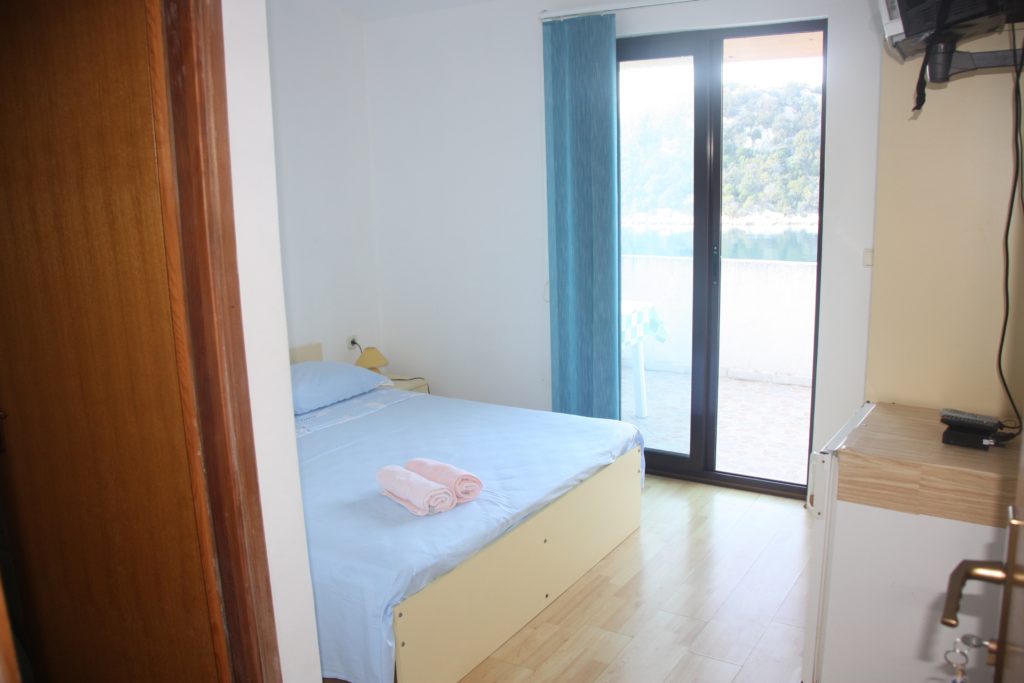 | – 1. kat – Kupaonica s tuš kadom – Ukupan broj ležaja 2 – Površina sobe: 12 m² – Terasa: 7 m² – Glačalo (usluga na zahtjev) – Kompletna kupaonica (ne dijeli se s ostalim gostima) – Prehranu nudimo u svom restoranu – Čišćenje i pospremanje 1x tjedno – Dozvoljeno pušenje u apartmanu – Mogućnost držanja malih kućnih ljubimaca (plaćanje kod iznajmljivača po dogovoru) – Pogled na: more |